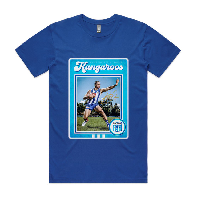 Celebrate one of the Kangaroos’ brightest rising stars with the LDU Card Tee—a bold and stylish tribute to Luke Davies‑Uniacke (LDU). This tee features a striking player‑card design on the front, complete with his name and the official club logo, making it perfect for showing your support around town or at the footy. Crafted from premium, preshrunk combed cotton, it offers a comfortable and reliable fit wash after wash. The tee comes in the iconic NMFC Royal Blue and suits a wide range of fans thanks to its unisex, regular cut.