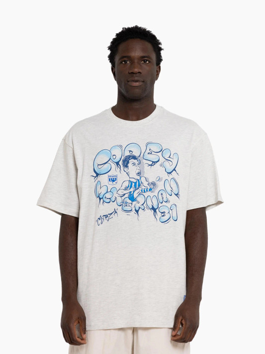 This exclusive Legends Range tee pays tribute to Corey McKernan — a key figure in North Melbourne’s golden era and a premiership hero of 1996 and 1999. Featuring a stylish caricature design and the Legends branding, this shirt captures his enduring legacy on and off the field.