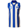 Go back in time with this North Melbourne Kangaroos Woollen Guernsey. Relive the glorious moment when you went to your first footy match on a Saturday afternoon every time you wear this jumper. The Merino Wool in this guernsey was grown by sheep grazing the Australian landscape, cared for by the Australian farmers, shorn by hand and manufactured here in Australia. The jumper features a traditional V-neck collar design with woven club logos on the chest and is a must-have for any diehard fan.